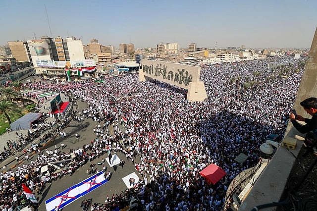 "No to the occupation! No to America!" chanted demonstrators gathered in central Baghdad after Shiite leader Moqtada Sadr called for a protest "in support of Gaza" and against Israel, an AFP journalist reported.