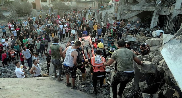 GAZA STRIP: A massive blast rocked a Gaza City hospital packed with wounded and other Palestinians seeking shelter Tuesday, killing hundreds of people, the Hamas-run Health Ministry said. Hamas blamed an Israeli airstrike, while the Israeli military blamed a rocket misfired by other Palestinian militants.