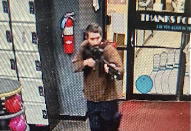 The Androscoggin County Sheriff’s Office released two photos of the suspect on its Facebook page that showed a shooter walking into an establishment with a weapon raised to their shoulder.