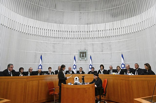 In a sign of the case's significance, all 15 of Israel's Supreme Court justices are hearing appeals to the law together for the first time in Israel's history. A regular panel is made up of three justices, though they sometimes sit on expanded panels. The proceedings were also being livestreamed.
