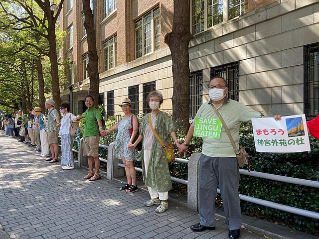 TOKYO: Protesters in Tokyo formed a human chain Sunday to demand the government save thousands of trees by revising its plan to redevelop a popular downtown park.
