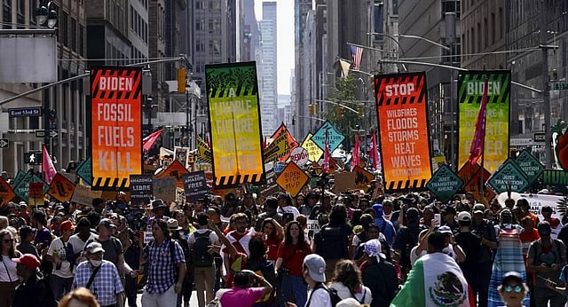 NEW YORK: Yelling that the future and their lives depend on ending fossil fuels, tens of thousands of protesters on Sunday kicked off a week where leaders will try once again to curb climate change primarily caused by coal, oil and natural gas.