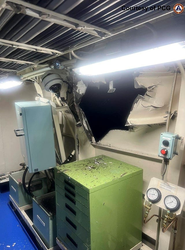 The task force said the collision between BRP Cape Engaño and one of the Chinese ships created a hole on the deck of the Philippine ship with a diameter of about 5 inches (12.7 centimeters).