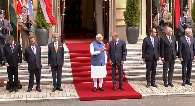 "A new landmark in the India-Poland partnership! PM Narendra Modi was warmly received by PM Donald Tusk of Poland at the Federal Chancellery in Warsaw and accorded a ceremonial welcome. This visit by an Indian Prime Minister to Poland after 45 years will impart fresh momentum to the India-Poland partnership," MEA Spokesperson Randhir Jaiswal posted on X.