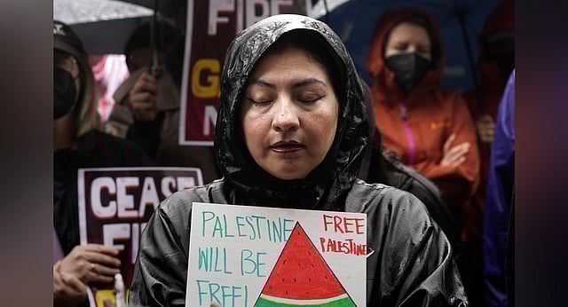 “We’re seeing Palestinian flags being banned, even the emoji online being flagged — and, you know, the word ‘Palestine’ being censored online,” Escarciga said. “But having this image that transcends language, that transcends culture, that transcends algorithms — can really reach people.”