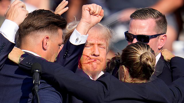 Trump paused briefly to pump his fist in the air before stepping off the stage. Immediately before disappearing into an SUV and just two minutes after the assassination attempt started, Trump raised his fist once more and turned briefly towards the crowd.