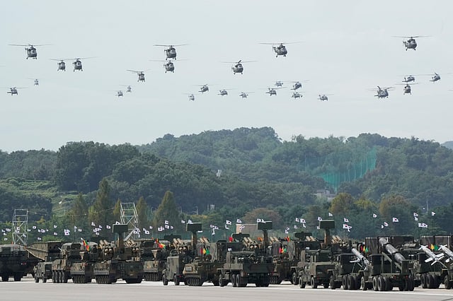 SEOUL: South Korea unveiled its most powerful ballistic missile and other weapons targeting North Korea during a massive Armed Forces Day ceremony Tuesday, as the South's president warned the North's regime would collapse if it attempts to use nuclear weapons.