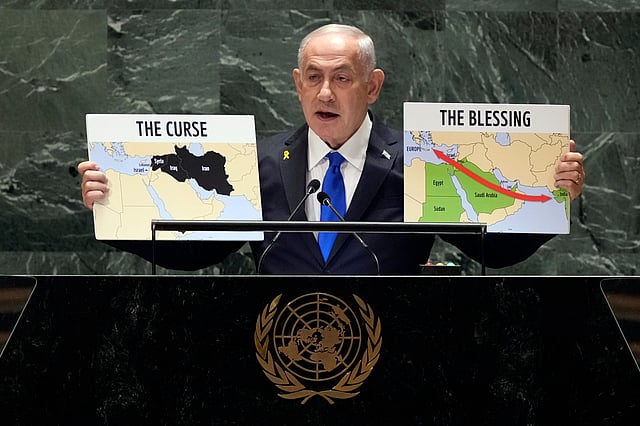 UNITED NATIONS: Israeli leader Benjamin Netanyahu signaled to the world from the United Nations on Friday that the multiple conflicts in the Middle East were far from resolved, and he vowed to continue battling the Lebanese Hezbollah and defeat Hamas in the Gaza Strip until "total victory."