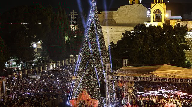 The Christmas tree was lit up outside the Church of the Nativity in Bethlehem’s Manger Square on Saturday. Several people gathered to witness the event, with a glimmer of hope and prosperity in Bethlehem, where Jesus is believed to have been born.