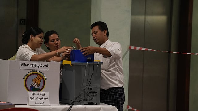 Voting is taking place in three phases, with Sunday’s first round being held in 102 of Myanmar’s 330 townships. The second phase will take place Jan. 11, and the third on Jan. 25. Final results are expected to be announced in late January.
