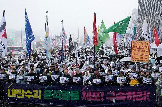 SEOUL: Hundreds of South Koreans, bundled up against freezing temperatures and snow, rallied overnight into Sunday near the residence of impeached President Yoon Suk Yeol, calling for his ouster and arrest, as authorities prepared to renew their efforts to detain him over his short-lived martial law decree.