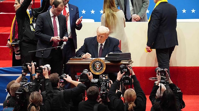In remarks later at the Capitol's Emancipation Hall, he issued a number of other false claims, including one that distorts pardons made by President Joe Biden as he left office. Here’s a look at the facts.