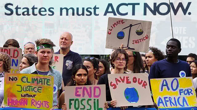 Climate activists had gathered outside the crowded court with a banner that read: “Courts have spoken. The law is clear. States must ACT NOW.” They watched the ruling on a giant screen, clapping and cheering at times during the two-hour hearing. When it was over, others emerged from the courtroom laughing and hugging.