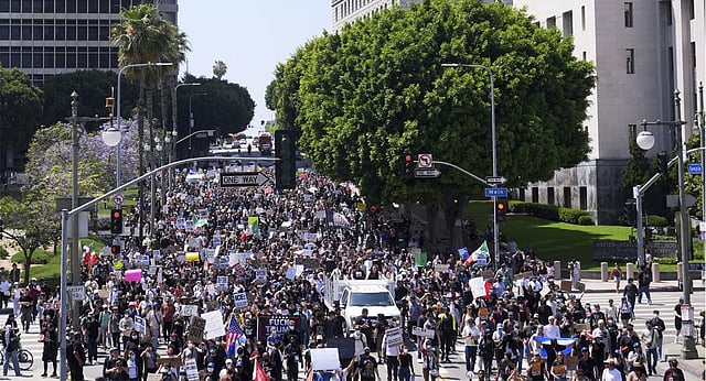 Minutes later, the Los Angeles Police Department fired rounds of crowd-control munitions to disperse the protesters, who they said were assembled unlawfully. Much of the group then moved to block traffic on the 101 freeway until state patrol officers cleared them from the roadway by late afternoon.