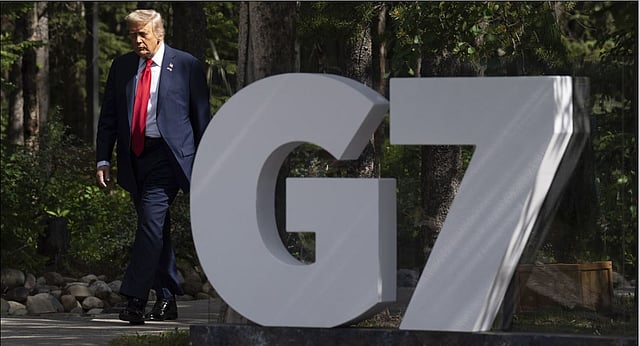 United States President Donald Trump makes his way to the official welcome at the G7 Summit in Kananaskis, Alberta, Canada, Monday, June 16, 2025 Photo | AP