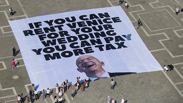 VENICE: This weekend's star-studded Venice wedding of multi-billionaire Amazon founder Jeff Bezos and Lauren Sanchez has galvanized activist groups that are protesting it as a sign of the growing disparity between the haves and have-nots as well as disregard of the city's residents.