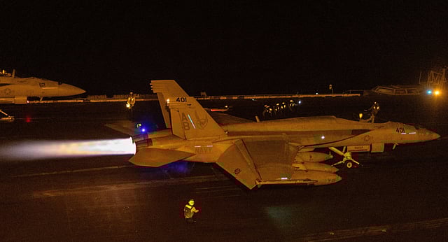 The US Central Command (CENTCOM), which posted images of fighters taking off from an aircraft carrier and a bomb demolishing a building compound, said "precision strikes" were launched to "defend American interests, deter enemies, and restore freedom of navigation."