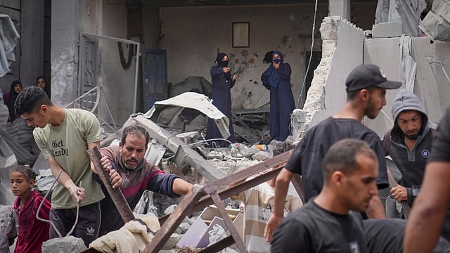 AFP images showed residents digging through rubble in search of bodies, which were carried away on stretchers under blankets.