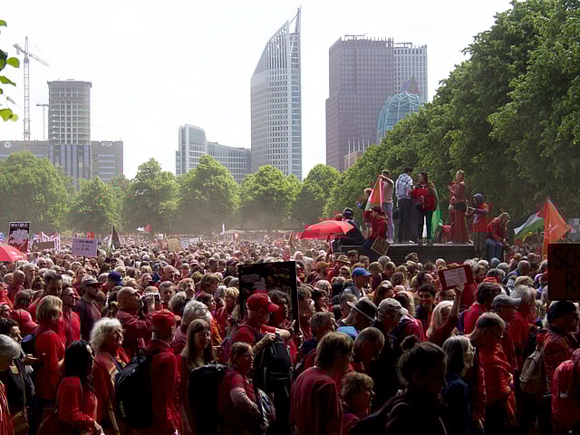 Tens of thousands of people turned out Sunday in The Hague to protest the Dutch government's policy on Israel's genocidal war on Gaza.
