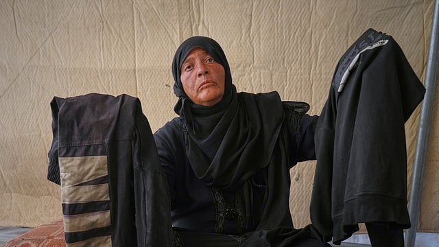 “I keep smelling them. I want a scent of him,” she said, her voice cracking into tears. “I keep imagining him coming, walking toward me in the tent. I say he is not dead.”
