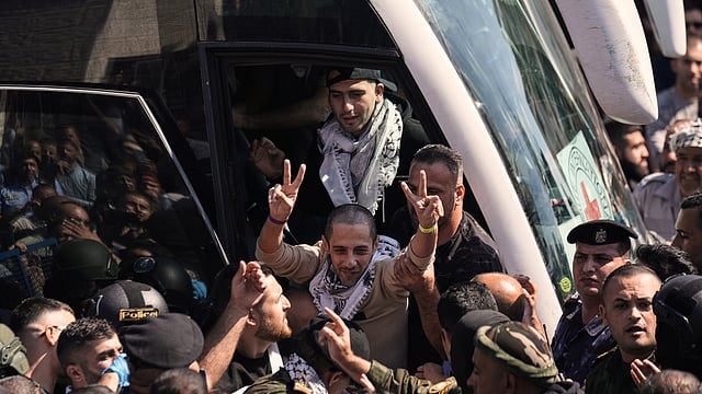 The released prisoners have arrived in Gaza's Khan Younis as thousands of Palestinians gathered at the Nasser Hospital to welcome them, cheering and waving Palestinian and Hamas flags in celebration, reported AFP.