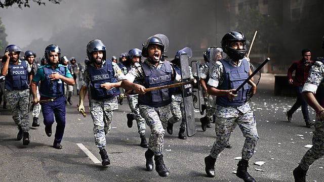 Police officers fired tear gas and used stun grenades and batons to disperse several hundred protesters outside the national Parliament building in the capital Dhaka. Some of them clashed with police while others vandalized a police vehicle. Witnesses said several people were injured in the clashes.