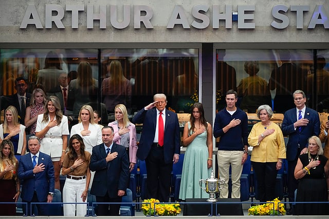 The Trump Organisation once controlled its own US Open suite, which was adjacent to the stadium's television broadcasting booth, but suspended it in 2017, during the first year of Trump's first term. The family business is now being run by Trump's sons with their father back in the White House.