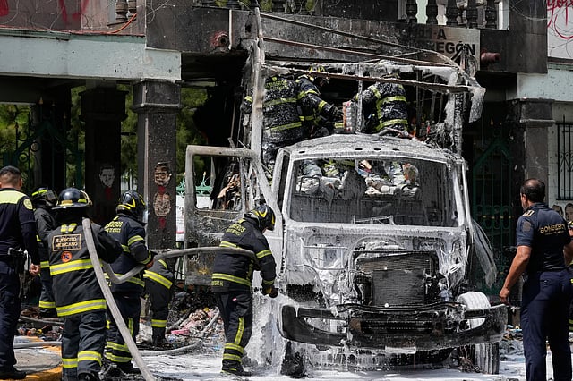 MEXICO CITY: Protesters who want justice in the case of 43 students who disappeared in 2014 rammed the gates of a military base in Mexico City with a truck Thursday and set the vehicle on fire.