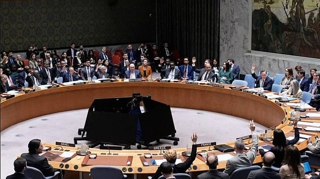 That resolution, adopted by a vote of 13-0 with Russia and China abstaining, also condemned Iran's actions in the Strait of Hormuz as a threat to international peace and security and called for an immediate end to all actions blocking shipping.