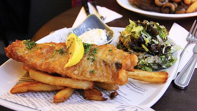 The classic recipe for fish and chips -- white fish deep-fried in batter, chips, and mushy peas, often with tartare sauce on the side -- dates back to the 1860s.