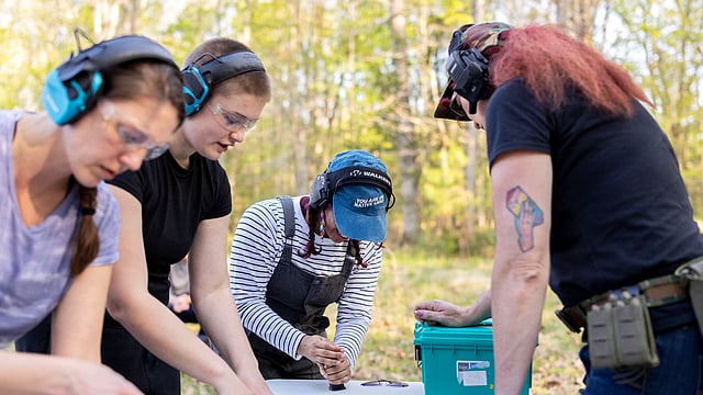 About a dozen people are taking Elliott's class, which first goes over the fundamentals of gun shooting and safety before progressing to the actual practice range.