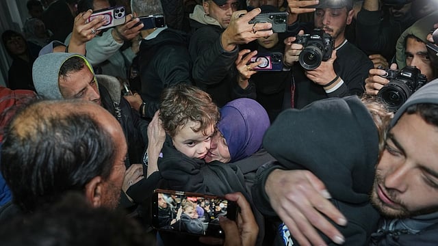 Ambulances queued for hours at the border before ferrying patients into Egypt, the state-run Al-Qahera News satellite television channel showed. Just before midnight, a bus arrived in Gaza carrying Palestinian returnees who had fled the fighting early in the war. As the vehicle entered the compound of a hospital in Khan Younis, a girl wearing barrettes and an older woman stood just inside the front door, waving to relatives anxious for their return.