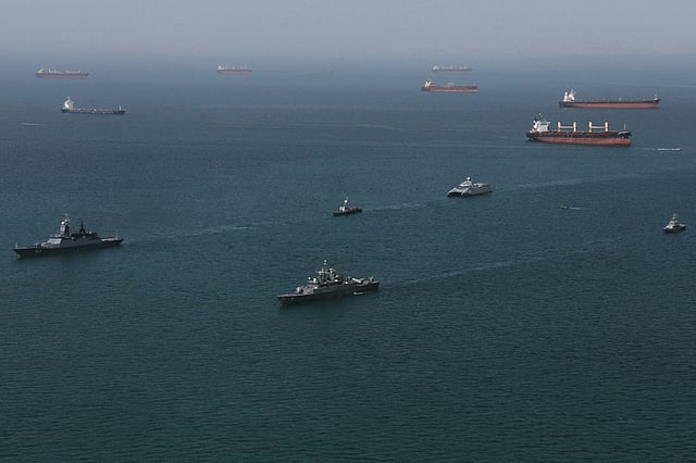 This image provided Thursday Feb. 19, 2026 by the Iranian military and dand dated Wednesday, Feb. 18, 2025, shows navy ships conducting operations during a join drill by Iranian and Russian forces in the Indian Ocean File Photo | AP