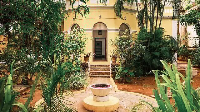Since our journey began from Bengaluru, we opted for a delightful ride on the Vande Bharat Express, traversing diverse landscapes, including serene rivers like the Kaveri and Kapila and the rugged terrains of Ramanagara, famously known as the backdrop for the 1975 action-adventure film Sholay. Upon arrival from your respective cities, a mere fifteen minute’s auto ride away from the railway station and Mysuru airport is a 108-year-old heritage boutique home smeared in pastel yellow and royal white sure to make you experience love at first sight. Nestled in the tranquil residential area of Laxmipuram, your sanctuary for the weekend is Laika Heritage Stay — surrounded by a beautifully shaded private garden, providing an abundance of peace and calm — making it an ideal spot to enjoy a cup of coffee amidst blooming flowers, with the delightful company of wandering cats, visiting birds and fluttering butterflies. But what’s so special about this sojourn you ask? This fully renovated century-old bungalow exuding timeless charm sits in close proximity to popular destinations like Kukkarahalli Lake, Chamundi Hill, Mysore Palace, RK Narayan’s House and the Mysuru Zoo — should you be tempted to explore the attractions.