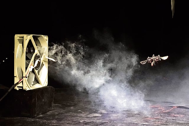 The speedy robot was agile enough to complete 10 consecutive somersaults in 11 seconds, even when wind disturbances threatened to push it off course. “We want to be able to use these robots in scenarios that more traditional quad copter robots would have trouble flying into, but that insects could navigate. Now, with our bioinspired control framework, the flight performance of our robot is comparable to insects in terms of speed, acceleration, and the pitching angle. This is quite an exciting step toward that future goal,” says Kevin Chen, an associate professor in the Department of Electrical Engineering and Computer Science (EECS), head of the Soft and Micro Robotics Laboratory within the Research Laboratory of Electronics (RLE), and co-senior author of a paper on the robot.