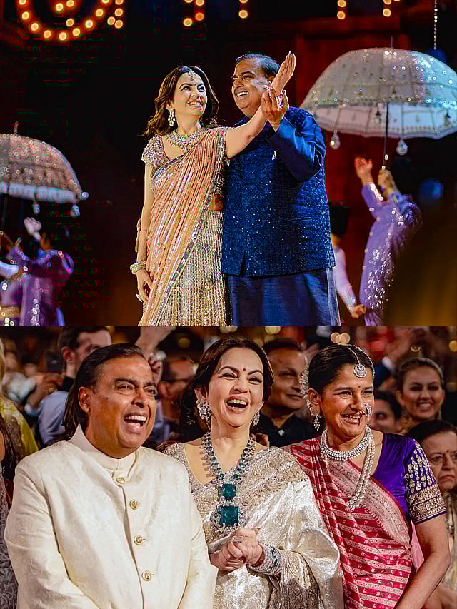 Bollywood actors Sonam Kapoor, Kareena Kapoor and Alia Bhatt attend Anant Ambani and Radhika Merchant's pre-wedding bash..Actors Ranbir Kapoor, Aditya Roy Kapoor and Ananya Pandey attend Anant Ambani and Radhika Merchant's pre-wedding bash..Pop-icon Rihanna with Akash Ambani and Isha Ambani during Anant Ambani and Radhika Merchant's pre-wedding bash, in Jamnagar..Former cricketer Zaheer Khan with wife actor Sagarika Ghatge during Anant Ambani and Radhika Merchant's pre-wedding bash, in Jamnagar..Pop-icon Rihanna performs during Anant Ambani and Radhika Merchant's pre-wedding bash..Cricketer Rohit Sharma with wife Ritika during Anant Ambani and Radhika Merchant's pre-wedding bash..Bollywood actor Alia Bhatt during Anant Ambani and Radhika Merchant's pre-wedding bash, in Jamnagar..Bollywood actor Shah Rukh Khan with wife Gauri, daughter Suhana and son Abram during Anant Ambani and Radhika Merchant's pre-wedding bash..Executive Chairman of ArcelorMittal Lakshmi Mittal with wife Usha Mittal leaves after attending Anant Ambani and Radhika Merchant's pre-wedding bash..American singer Akon arrives for the pre-wedding events of Anant Ambani and Radhika Merchant, in Jamnagar..Microsoft co-founder Bill Gates with Paula Hurd attends Anant Ambani and Radhika Merchant's pre-wedding bash, in Jamnagar..Bollywood actor Disha Patni during Anant Ambani and Radhika Merchant's pre-wedding bash..Bollywood actor-couple Ranveer Singh and Deepika Padukone during Anant Ambani and Radhika Merchant's pre-wedding bash..Follow The New Indian Express channel on WhatsApp Download the TNIE app to stay with us and follow the latest