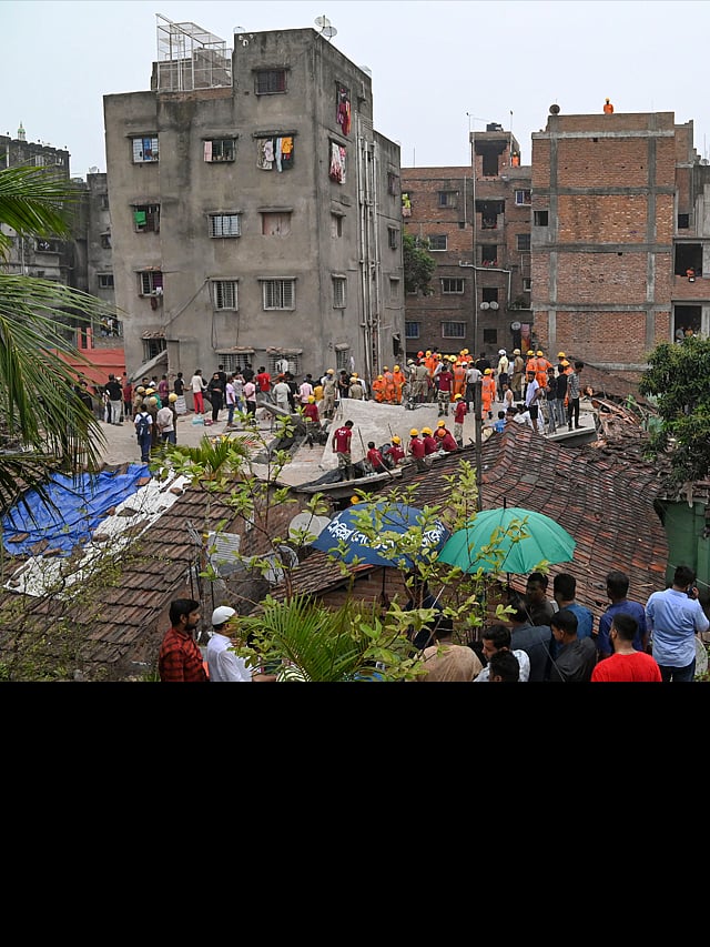 According to locals, concrete chunks fell from the building before it collapsed. There was a loud sound and a thick cloud of dust engulfed the area as the building collapsed. The debris fell on nearby shanties in the densely populated area.