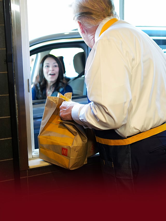 Republican presidential nominee Donald Trump manned the fry station at a McDonald's in Pennsylvania before staging an impromptu news conference, answering questions through the drive-thru window.