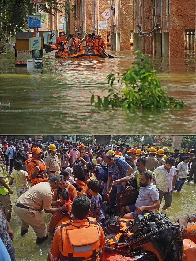 Due to flooding of Kendriya Vihar Apartments, boats have been deployed by both NDRF and SDRF to rescue over 3000 residents as over four feet water entered the apartment complex.