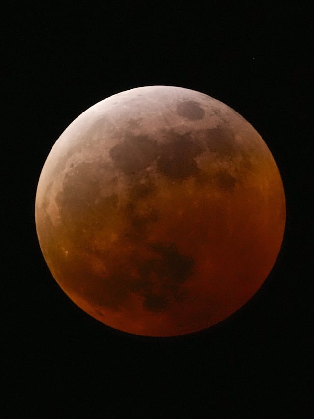 The deep crimson glow is caused by Earth’s atmosphere bending and scattering sunlight. The more dust, clouds, and particles in the air, the deeper the red hue. This explains why each Blood Moon can appear in different shades, from bright orange to dark red.