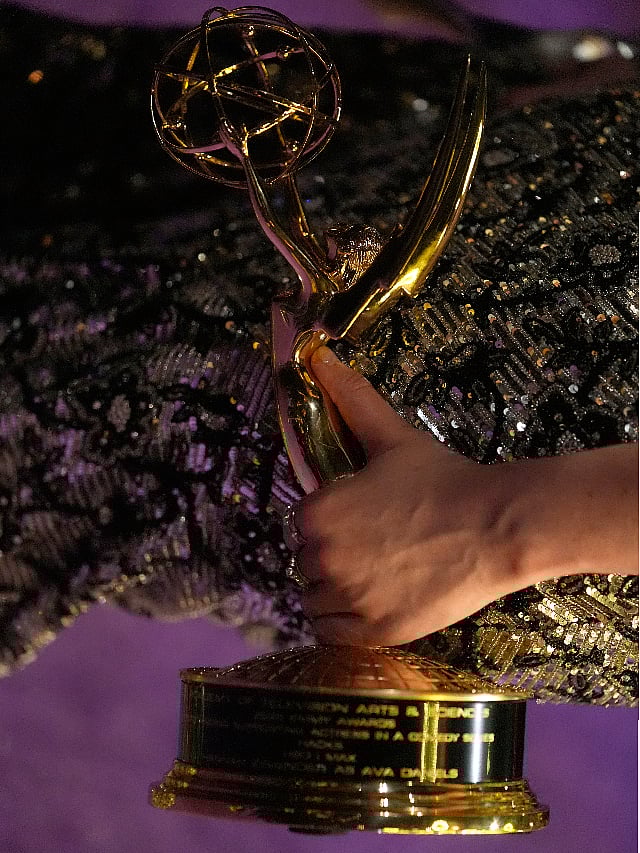 Netflix’s gripping teen drama Adolescence dominated with 8 Emmys including Best Limited Series and acting wins for Stephen Graham and Owen Cooper..At just 15, Owen Cooper became the youngest male actor ever to win an Emmy, earning Supporting Actor for Adolescence..Medical drama The Pitt shocked by winning Best Drama Series, with Noah Wyle and Katherine LaNasa also taking home Emmys..Apple TV+’s Severance didn’t win Best Drama, but Britt Lower and Tramell Tillman triumphed in Lead and Supporting Acting categories..Seth Rogen’s The Studio won 13 Emmys, a comedy record, including Best Series, Actor, Writing, and Directing..Jean Smart won her fourth Emmy for Hacks, while Hannah Einbinder earned her first, and made headlines with a bold political speech..Stephen Colbert’s show finally won Best Talk Series, while host Nate Bargatze donated $100K in a speech-time challenge for charity..'Adolescence,' 'The Studio' dominate television's Emmy Awards.Follow The New Indian Express channel on WhatsApp Download the TNIE app to stay with us and follow the latest