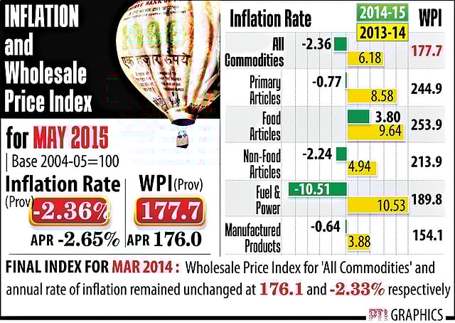 NEW DELHI:The Wholesale Price Index (WPI) continues to be in the negative zone for the seventh consecutive month in May, although prices fell at a slower rate of (-) 2.36 per cent as against the previous month, mainly on the back of plunging oil and manufacturing goods prices.