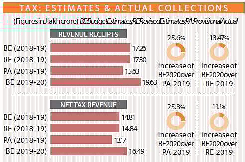 The government’s revenue receipts are being estimated to grow by 25.6 per cent over the last year’s actual revenues, with a massive 25.3 per cent rise in net tax revenues and a significant 27.2 per cent in non-tax revenues.