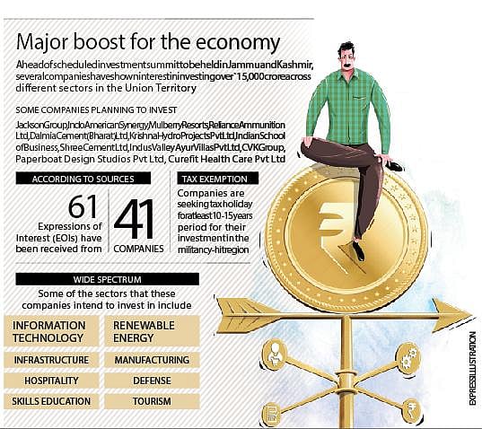 SRI NAGAR: Ahead of the first-ever Jammu and Kashmir investment summit scheduled to be held in spring 2020, officials have told this newspaper that as many as 41 companies have shown interest in investing over Rs 15,000 crore in the region in the form of 61 Expression of Interest (EOIs). Some of the sectors that these companies intend to invest in include, information technology, infrastructure, renewable energy, manufacturing, hospitality, defence, skills education and tourism.