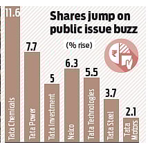 in Tata Sons could potentially amount to Rs 19,850 crore or 80% of its market capitalisation. Besides Tata Chemicals, Tata Motors, Tata Power, Tata Steel, Rallis India, Tata Power, Nelco and Tata Investment Corporation marched ahead and witnessed strong buying on Thursday. Among the 17 active listed Tata stocks, only Titan (down 0.6%) closed with a cut on Thursday.