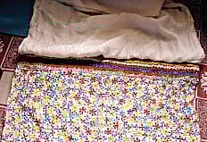 Fold the cloth material and cut it to 15X17 inch size. If you are using two different colour materials... keep the fabrics together and cut it.