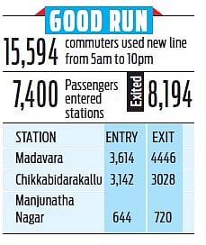 On the first train which terminated at Madavara were HR Giridhar, wife Thejaswini and five-year-old Pragna. Giridhar said, "We got back from Tirupati this morning with no idea about the extended operations. We planned to alight at Nagasandra and take a cab. This is a lovely surprise."