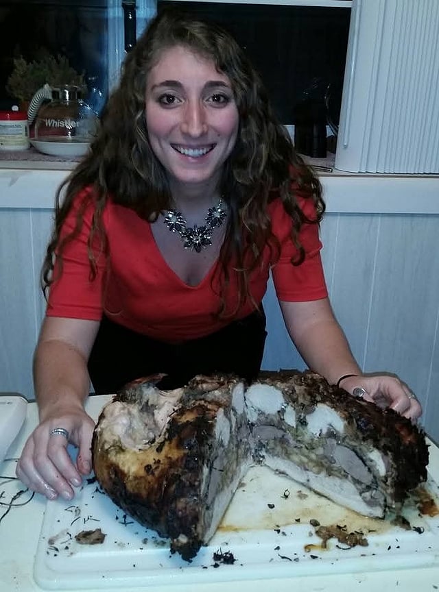 Yet some dishes remain close to home, like her mother’s mashed potatoes, stuffing made from a pre-packaged mix, and green beans baked with crispy onions.