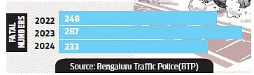 According to the recent National Crime Records Bureau (NCRB) statistics, Bengaluru recorded the highest number of pedestrian deaths (287) in 2023 among 53 major cities. In 2024 alone, the city has reported 233 pedestrians death.
