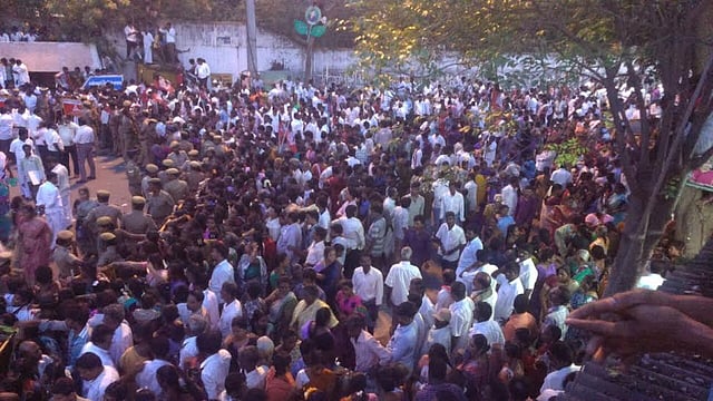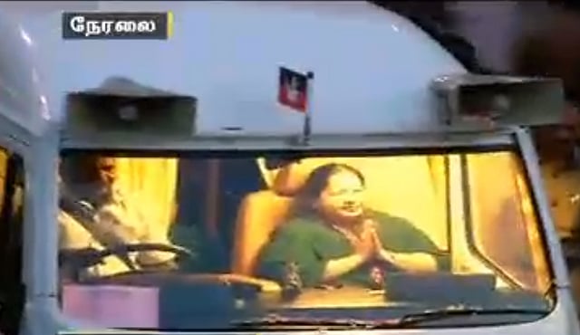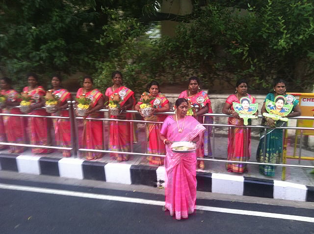 7:10 PM: Jayalalithaa's says, "This by-poll is forced due to political sabotage. Opposition parties are reeling out so many reasons for not contesting this by-poll. I don't want to seek votes by highlighting the faults of others. I seek votes from you on the basis of the performance of the AIADMK Government."7:10 PM: Jayalalithaa beings speech at Tiruvotriyur High Road.7:09 PM: Overwhelming enthusiasm among women. Jaya is nearing the first point where she will be speaking.7:05 PM: Fisherwomen welcome Jaya with poornakumbham (pot with a large base and small mouth, large enough to hold a coconut) at New Washermanpet.7:01 PM: Women throng both sides of roads in large numbers, raise slogans like 'Puratchi Thalavi Vaazgha' (hailing her, wishing for her long life).6:53 PM: Prasadams from Tiruchendur Murugan temple and Eachanaari Vinayak temple given to Jaya.6:52 PM: People welcome Jaya with Padaga dance Poornakumbham.6:50 PM: |